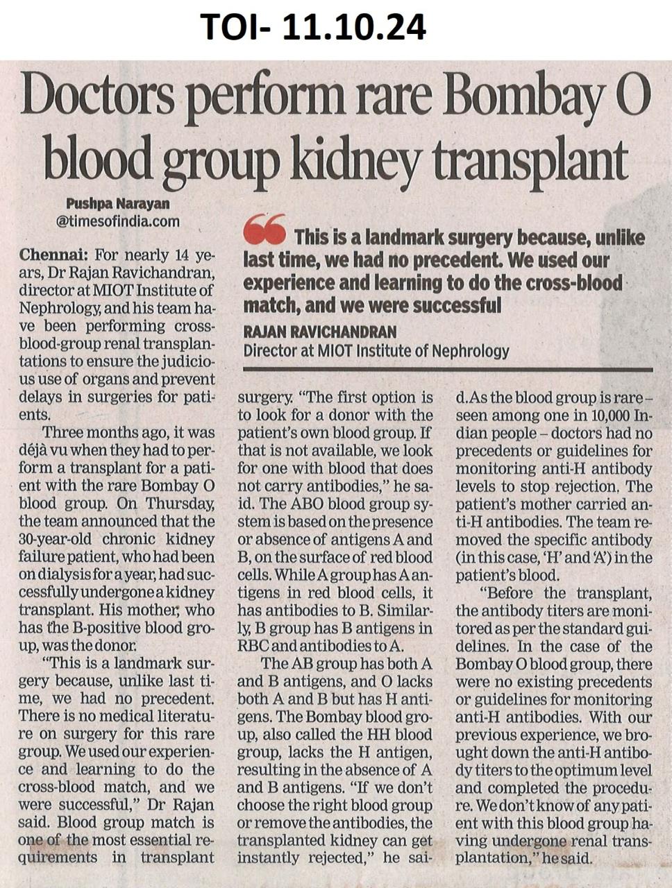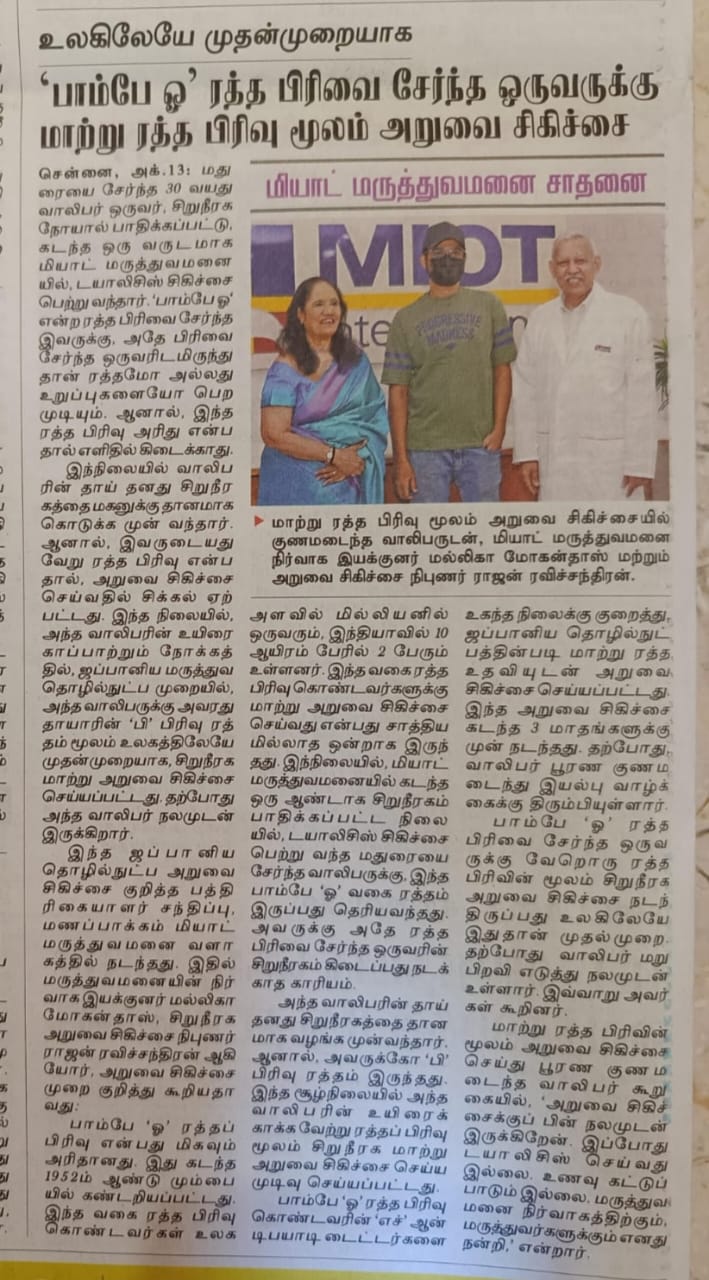 Bombay Blood Group Kidney Transplantation
